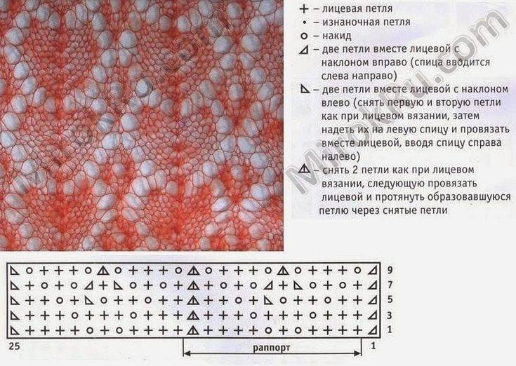 Начинать знакомство с ажурным вязанием рекомендуется именно с этой схемы, она проста и быстро вяжется.