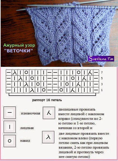 - «Гирлянда из листьев» — ажур, одинаково просто и красиво выполняющийся и на тонких спицах, и крючком: