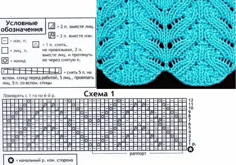Первый раз по схеме вяжется с 1 по 6 ряды, а далее повторяются только с 3 по 6