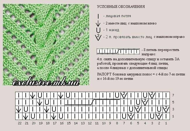 - «Листья с вертикальным рубчиком» — ажур с интереснейшей геометрией: