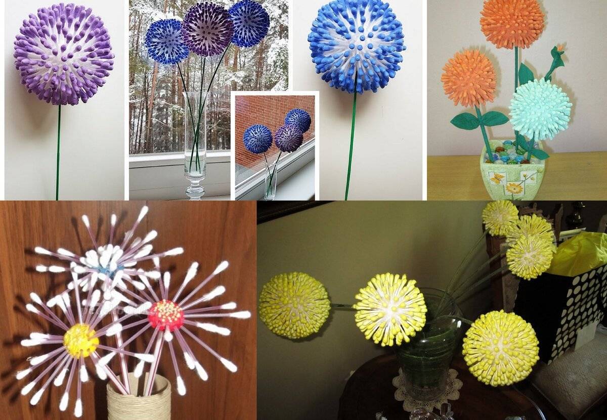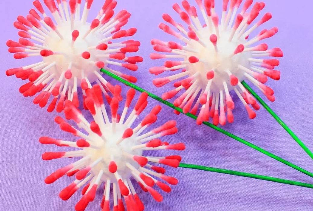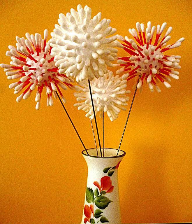 Сделать цветы из гигиенических дисков и палочек легко. Открытки, фигурки или картины выглядят броско, выразительно. Результат творчества порадует как взрослых, так и малышей