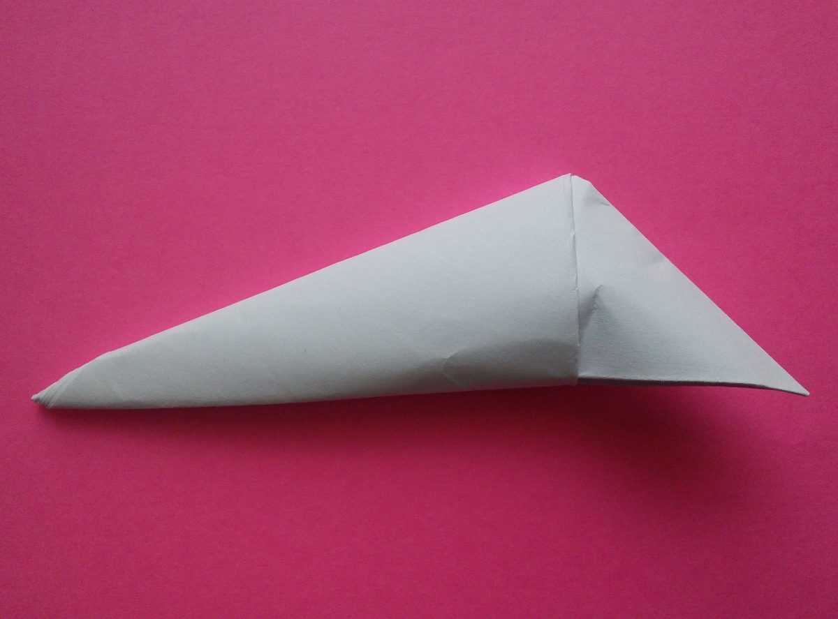 - После этого расправляют, чтобы получился вытянутый кулечек, зауженный с одной стороны и расширенный с другой.