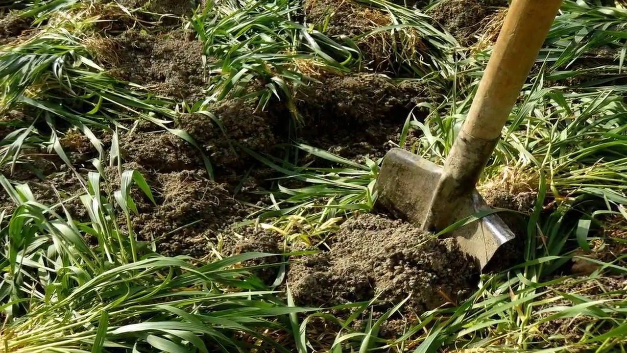 Если нижний слой почвы твердый, нужно вспахать толкающим трактором или перекопать вручную.