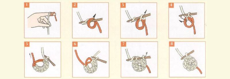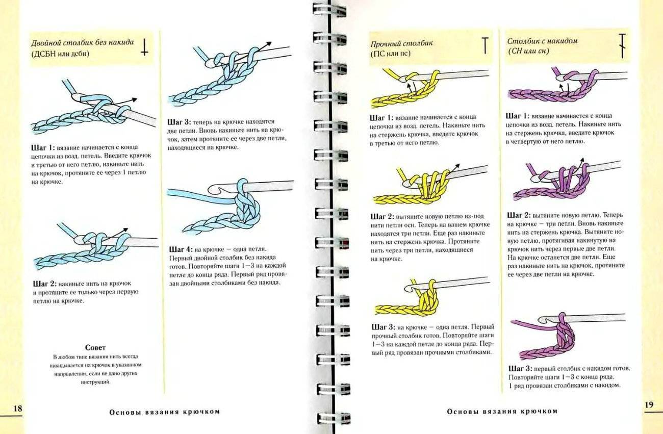 Вязание крючком невозможно без базовых техник: начальная петля, воздушная петля, столбик без накида.