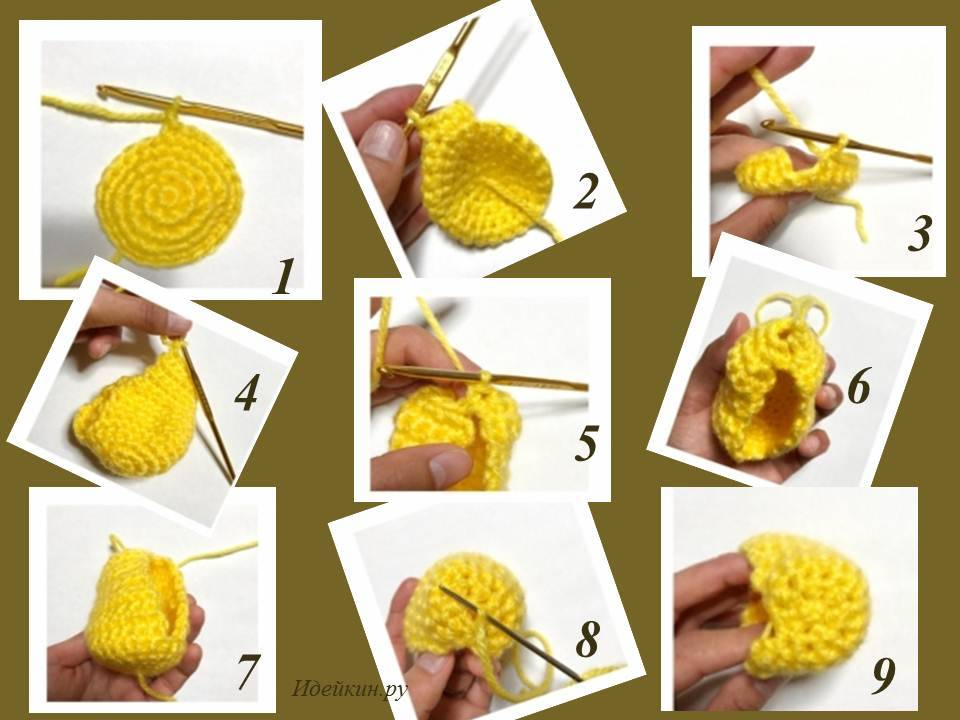 (СБН, приб.) 6 раз – значит (СБН, приб. в следующую п.) и так 6 раз, или (СБН, 2 СБН в одну п.) 6 раз – всё тоже самое, просто во втором случае уже идёт подробнее действие). Вот основные действия, которые нужны для того, чтобы знать, как связать крючком игрушку.