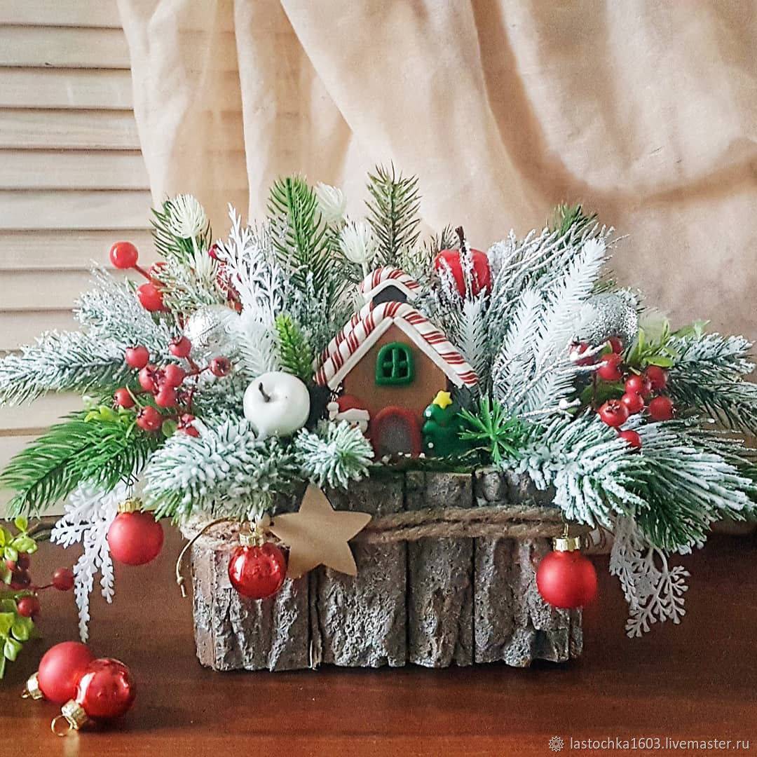 Новогодние композиции из искусственных цветов. «Новогодний подарок».