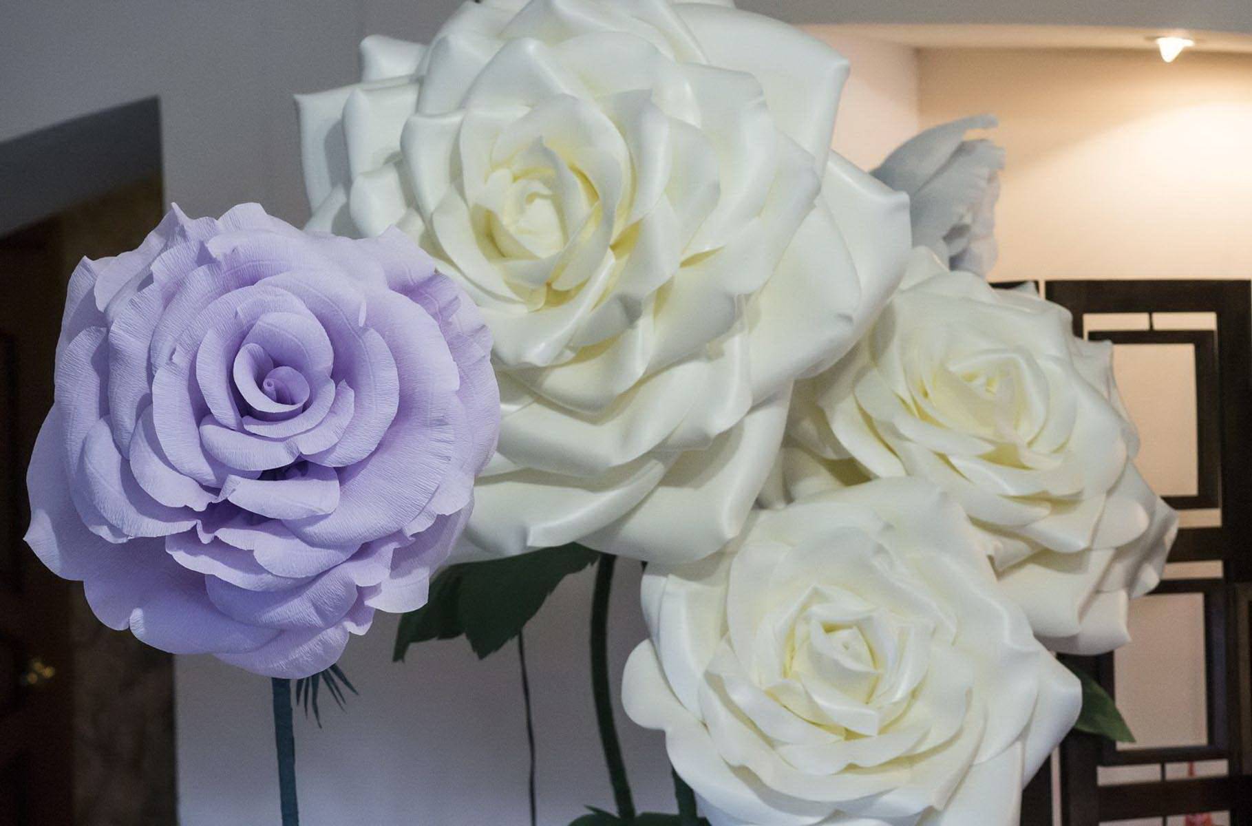 Размеры цветка могут быть разными. Всё зависит от вашей задумки. Вы можете собрать ростовую композицию или сделать украшение на стол или стену. Чем крупнее цветок – тем толще должен быть материал для его изготовления. Исключение составляют пионы — них очень много лепестков, и они должны быть тонкими.