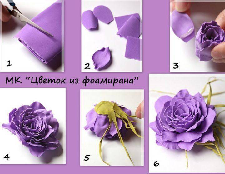 - Из ленты сиреневого цвета сделать 5 отрезков длиной 10 см.